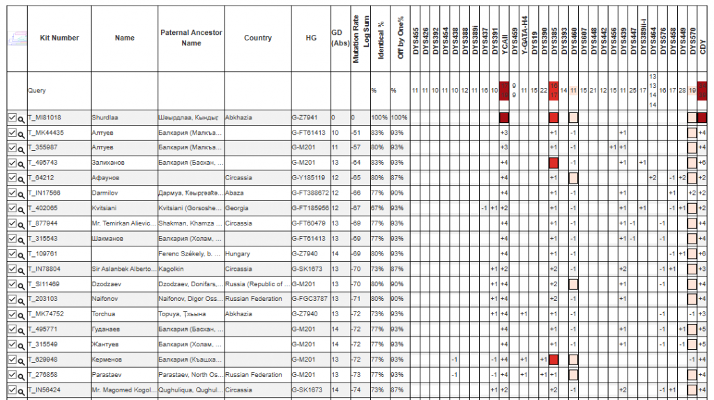 При этом судя по совпаденцам при апгрейде теста Шурдулаа сгруппируется с рядом балкарцев (Алтуевы, Шакманов, Залиханов)